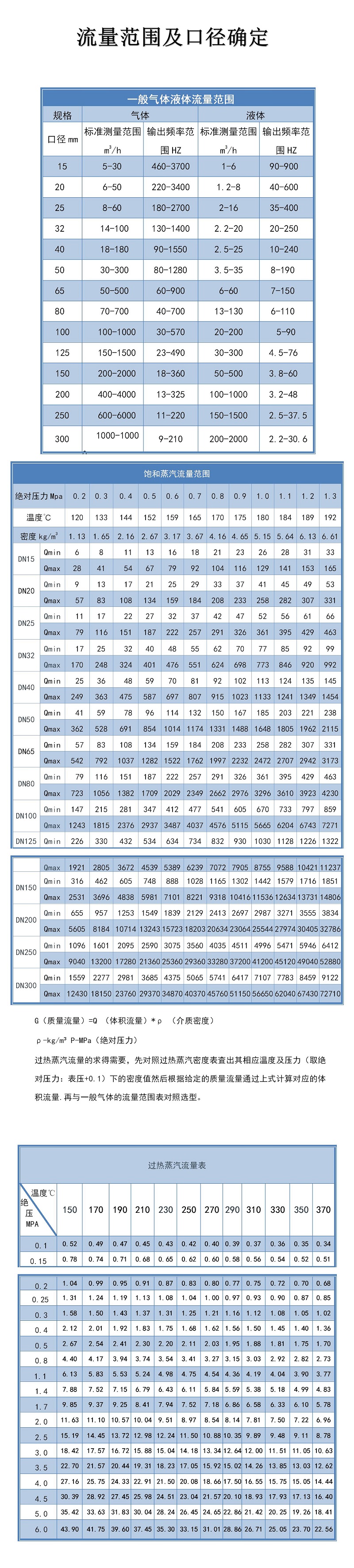 渦街流量計選型表