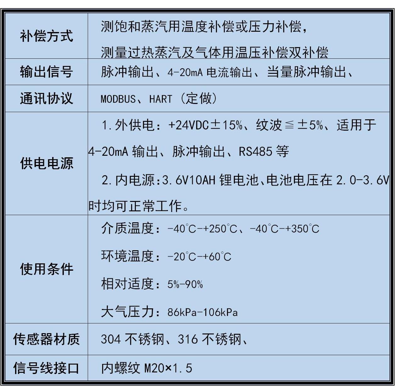 1. 渦街流量計具體適合工況參數見渦街流量計說明書